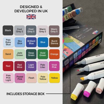 Zieler Dual Tip Graphic Markers are ideal for those wanting to create long-lasting, vivid artwork in pen form. This is a great mid-range graphic marker set that vastly outperforms all the cheap generic sets flooding the big stationery chains.